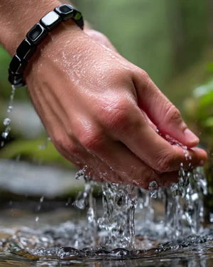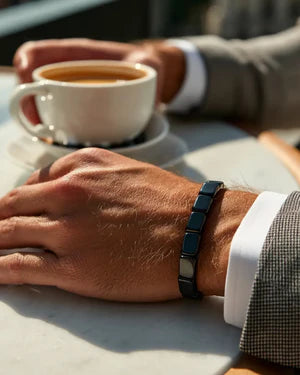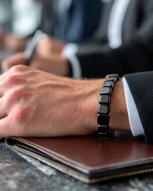 Hematite is known as the "Blood Stone" due to its high iron-oxide core. By creating a natural magnetic field against your pulse point, it helps neutralize the "digital noise" and electromagnetic static of the modern world. This grounding effect allows your body to exit "stress mode" and return to its natural state of masculine resonance, supporting the focus and hormonal balance required for peak performance.